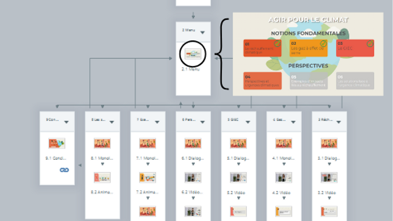 Afin de compléter le catalogue de formation de l'organisation, un module sur le climat avait été commencé. L'équipe du Learning Lab avait ainsi produit une partie du contenu et un storyboard.